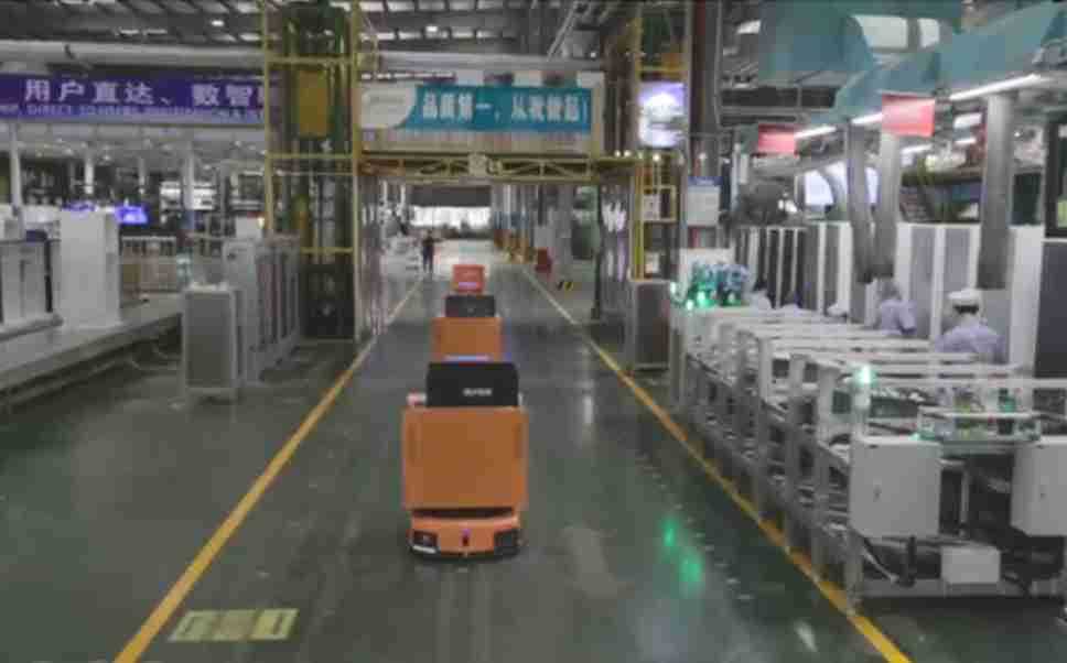 为车载冰箱物流配送打造的智能解决方案,,包含产中物流通过潜伏举升AMR搬运至线边,,产后成品物流智能仓储,,,,流程包含产中物流智能齐套入库,,,,线边安灯叫料AMR智能配送至线边,,成品入库、、、出库,,,,通过无人堆高车机器人,,,,智能仓储管理替代人工作业管理,,,实现更高存储、、、更高效率、、、更具柔性化的解决方案。。。